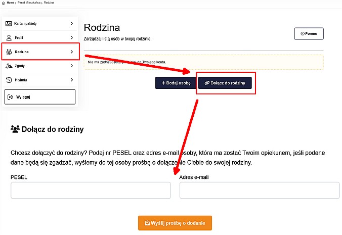 - na podany adres e-mail zostanie przesłana informacja z prośbą o dołączenie do konta rodzinnego.