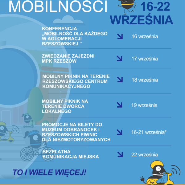 Już po raz 19 Urząd Miasta Rzeszowa weźmie udział w akcji Europejskiego Tygodnia Mobilności, która jest największym corocznym wydarzeniem poświęconym lokalnej promocji ekologicznego transportu miejskiego, obchodzonym w Europie jako European Mobility Week (EMW) w dniach 16-...