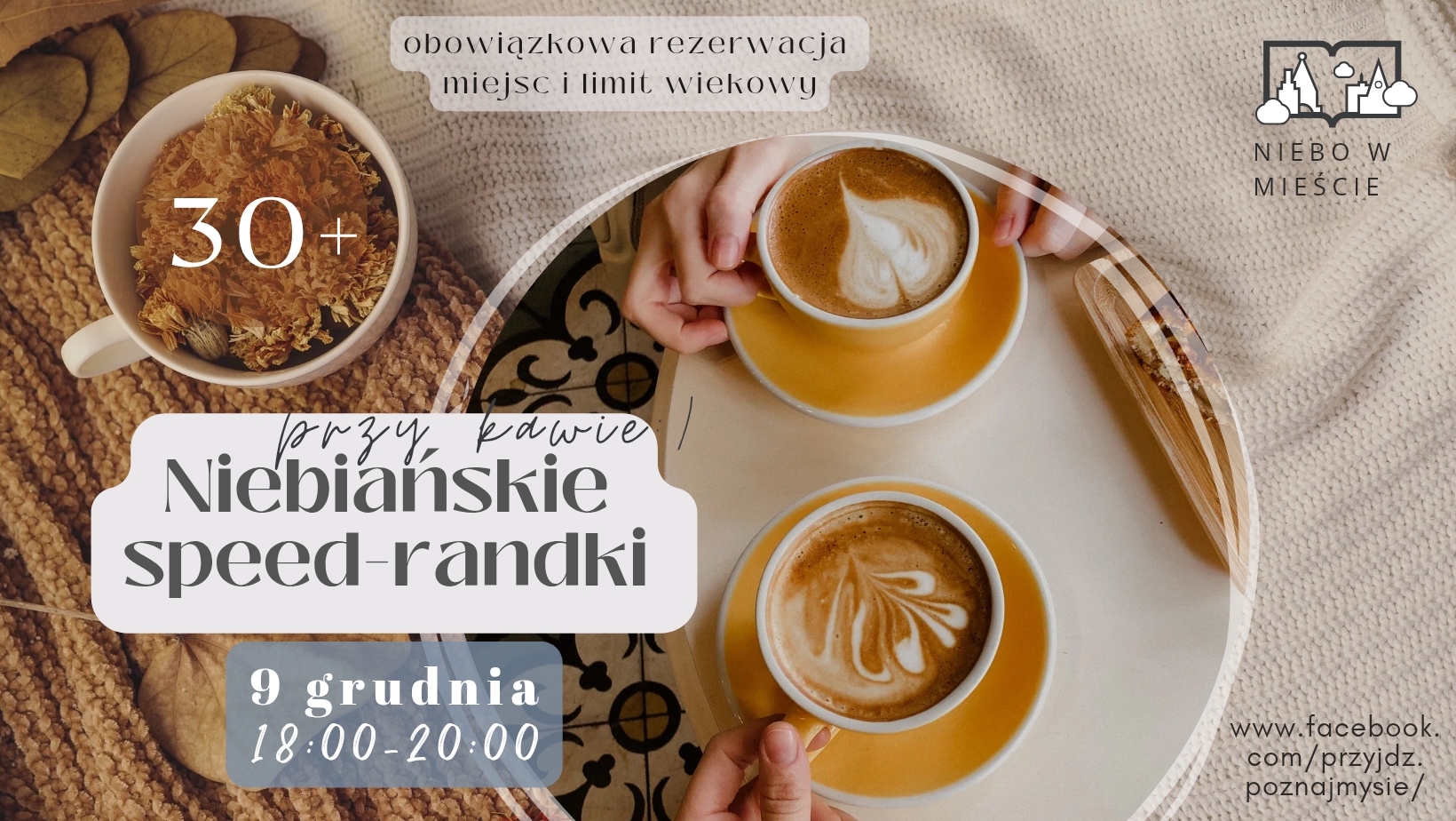Jeśli chcesz zawrzeć wartościowe znajomości, być może poznać przyszłą żonę/męża to zapraszamy do jedynego w swoim rodzaju miejsca, kawiarni „Niebo w Mieście” na wieczór dla osób stanu wolnego. Wydarzenie jest kierowane do kobiet i mężczyzn w wieku 35-45 l., którym bliskie są chrześcijańskie wartości.