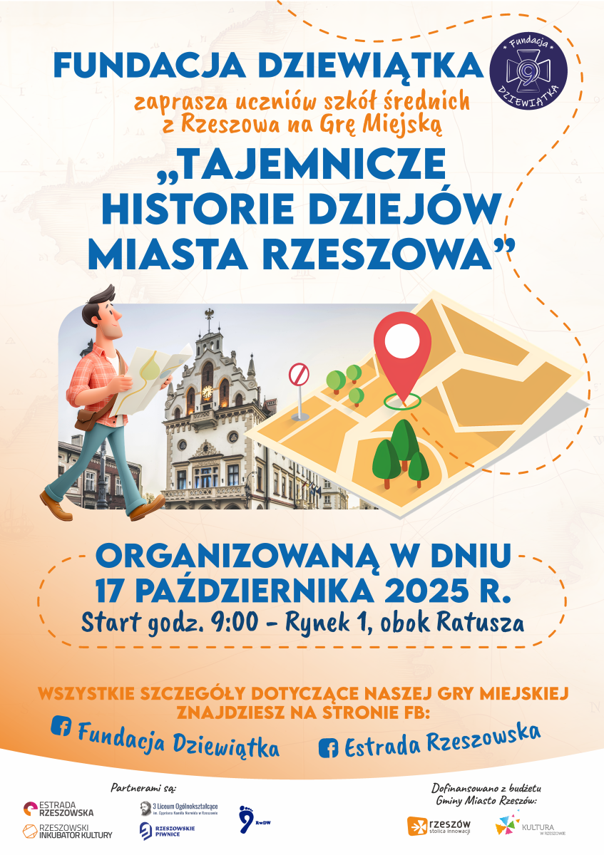 Fundacja Dziewiątka serdecznie zaprasza na GRĘ MIEJSKĄ – TAJEMNICZE HISTORIE DZIEJÓW MIASTA RZESZOWA.