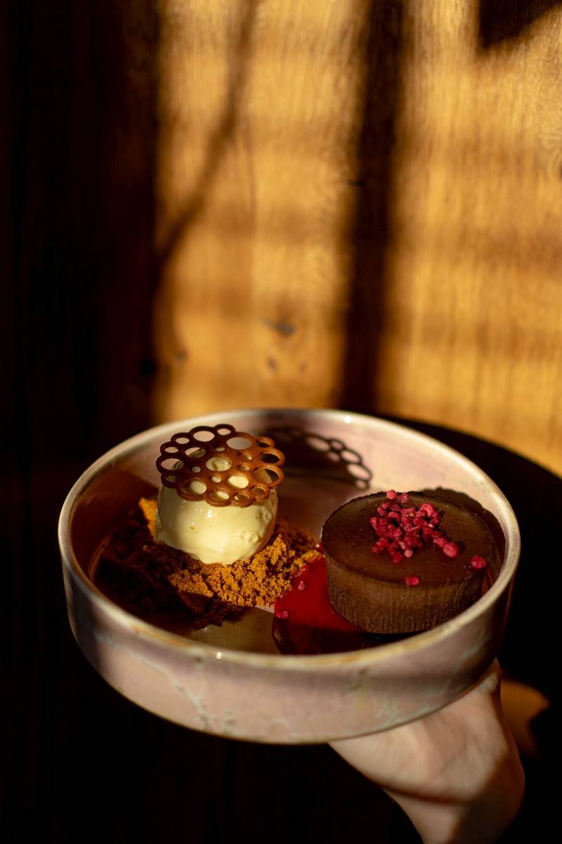 Fondant czekoladowy / lody waniliowe / sos malinowy