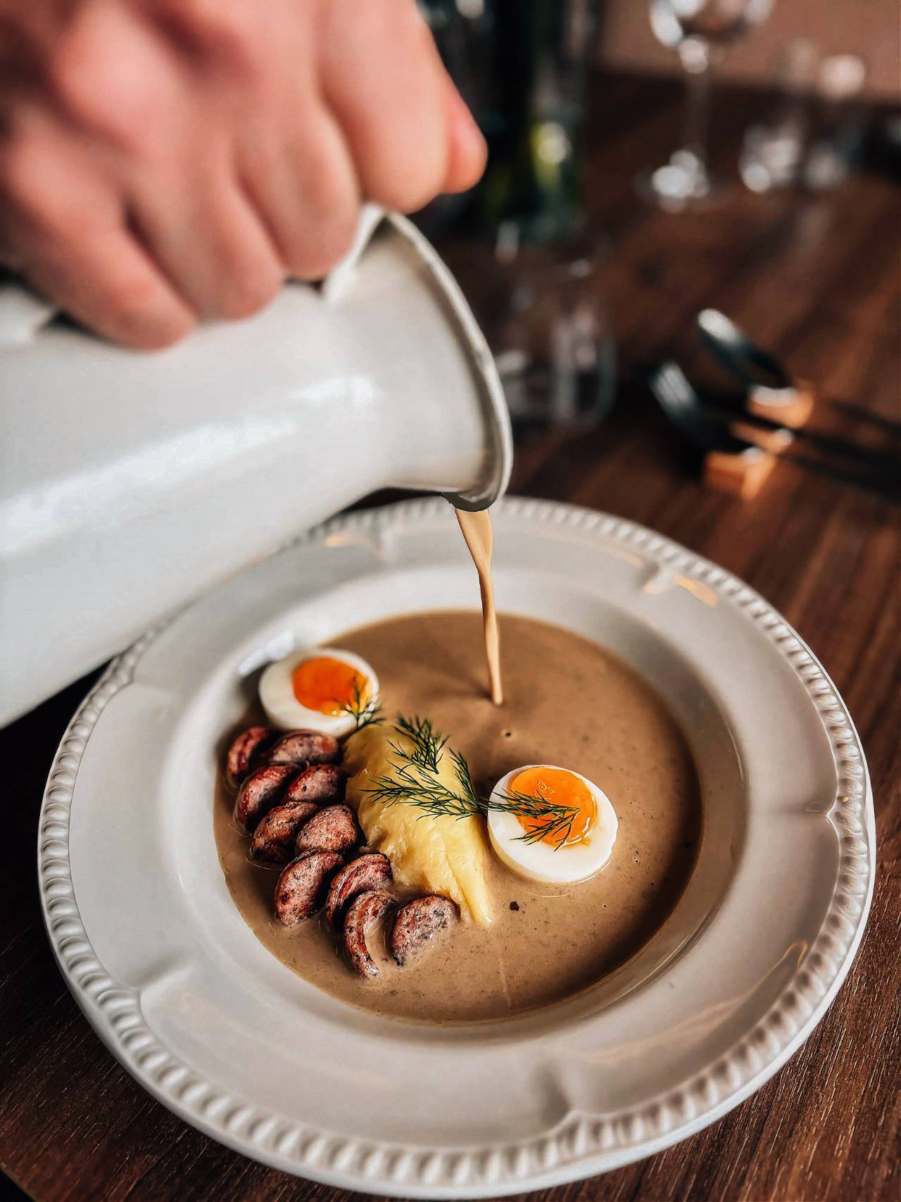 Kremowy żurek - hryczanki / chrzanowe ziemniaki / jajko / wędzony ser regionalny.