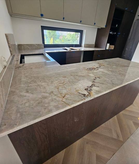 Specjalizujemy się w obróbce kamienia naturalnego oraz nowoczesnych materiałów, łącząc tradycyjne rzemiosło z nowoczesnymi technologiami i wysokimi standardami wykonania. W naszej ofercie znajdują się m.in. blaty kuchenne i łazienkowe, schody, parapety, posadzki, elementy wyposażenia wnętrz, a także nagrobki i realizacje cmentarne o charakterze premium. Każde zlecenie realizujemy kompleksowo — od doradztwa i projektu, przez precyzyjny pomiar, aż po wykonanie i montaż.