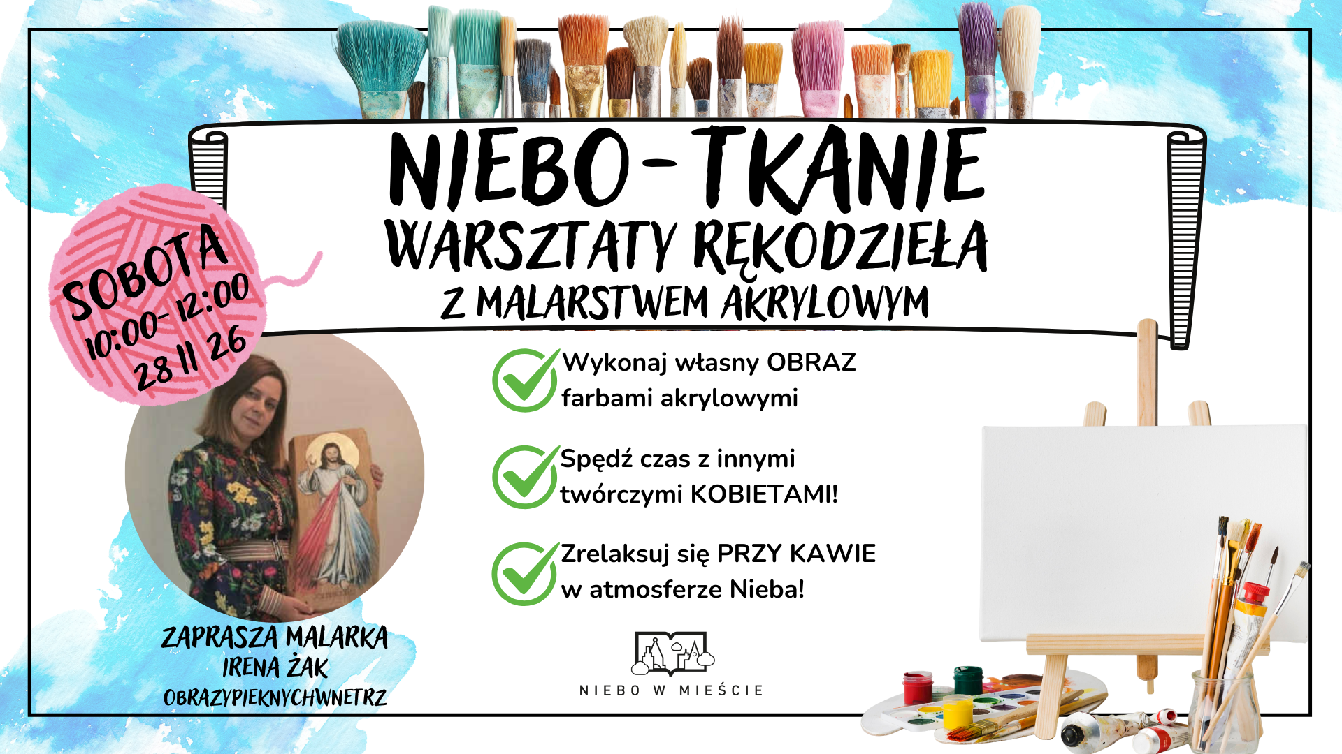 Przejdź do wydarzenia NIEBO-TKANIE Warsztaty rękodzieła z malarstwem akrylowym 28Lutego2026 NIEBO-TKANIE Warsztaty rękodzieła z malarstwem akrylowym Unikatowe zajęcia warsztatowe, na których doświadczysz głębokiego relaksu przez kontakt ze SZTUKĄ! Przyjdź i pozwól sobie... zadbać o siebie. Zapraszamy! 3 Maja 24, 35-030 Rzeszów, Poland Czytaj więcej