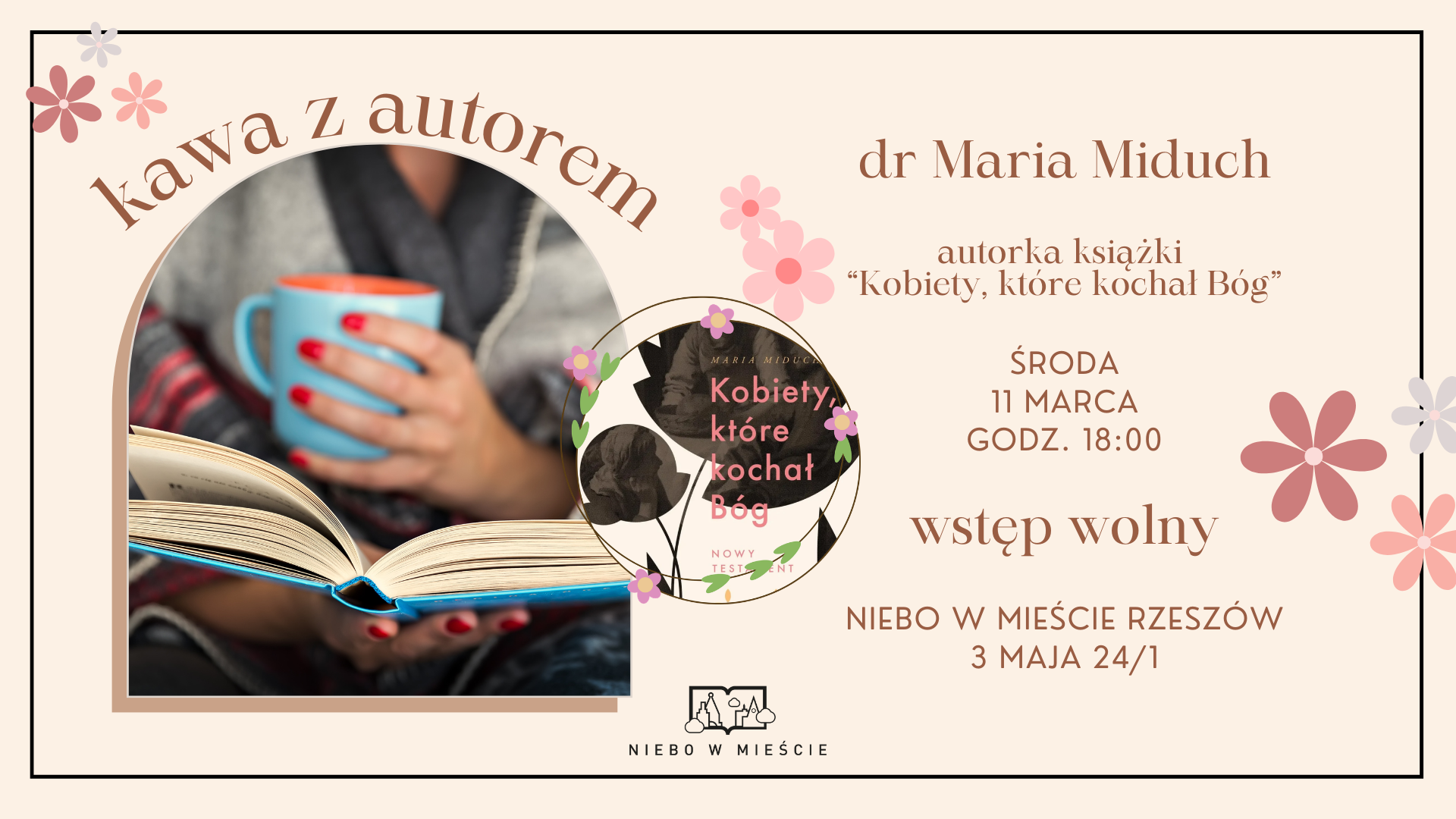 Przejdź do wydarzenia Kawa z autorem (marzec) 11Marca2026 Kawa z autorem (marzec) Zapraszamy serdecznie na spotkanie z biblistką i autorką książek dr Marią Miduch, które odbędzie w naszej kawiarni w środę 11 marca. 3 Maja 24, 35-030 Rzeszów, Poland Czytaj więcej