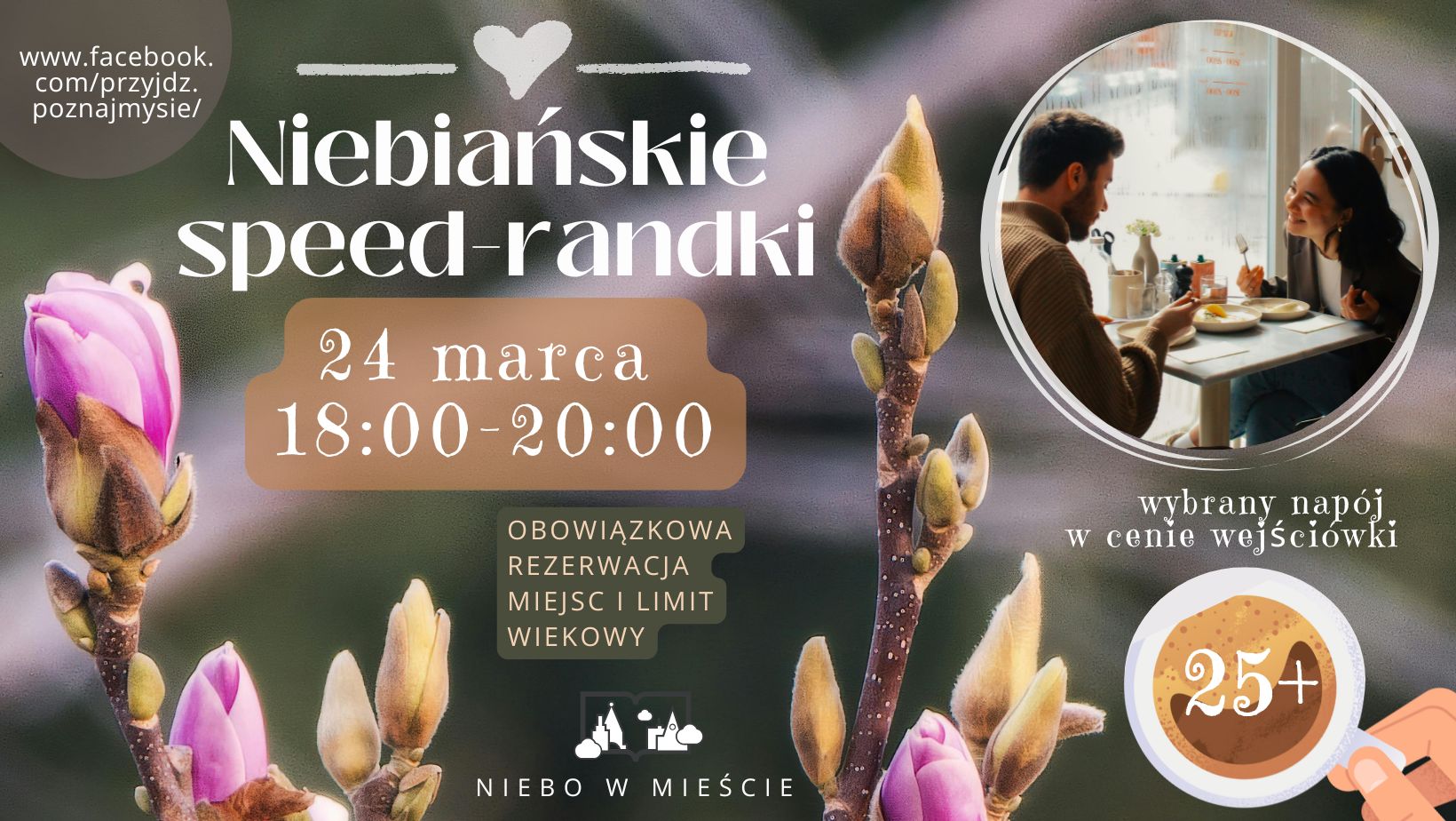 Przejdź do wydarzenia Niebiańska Speed-Randka dla chrześcijańskich singli (marzec ... 24Marca2026 Niebiańska Speed-Randka dla chrześcijańskich singli (marzec ... Jeśli chcesz zawrzeć wartościowe znajomości, być może poznać przyszłą żonę/męża to zapraszamy do jedynego w swoim rodzaju miejsca, kawiarni "Niebo w Mieście" na wieczór dla o ... 3 Maja 24, 35-030 Rzeszów, Poland Czytaj więcej