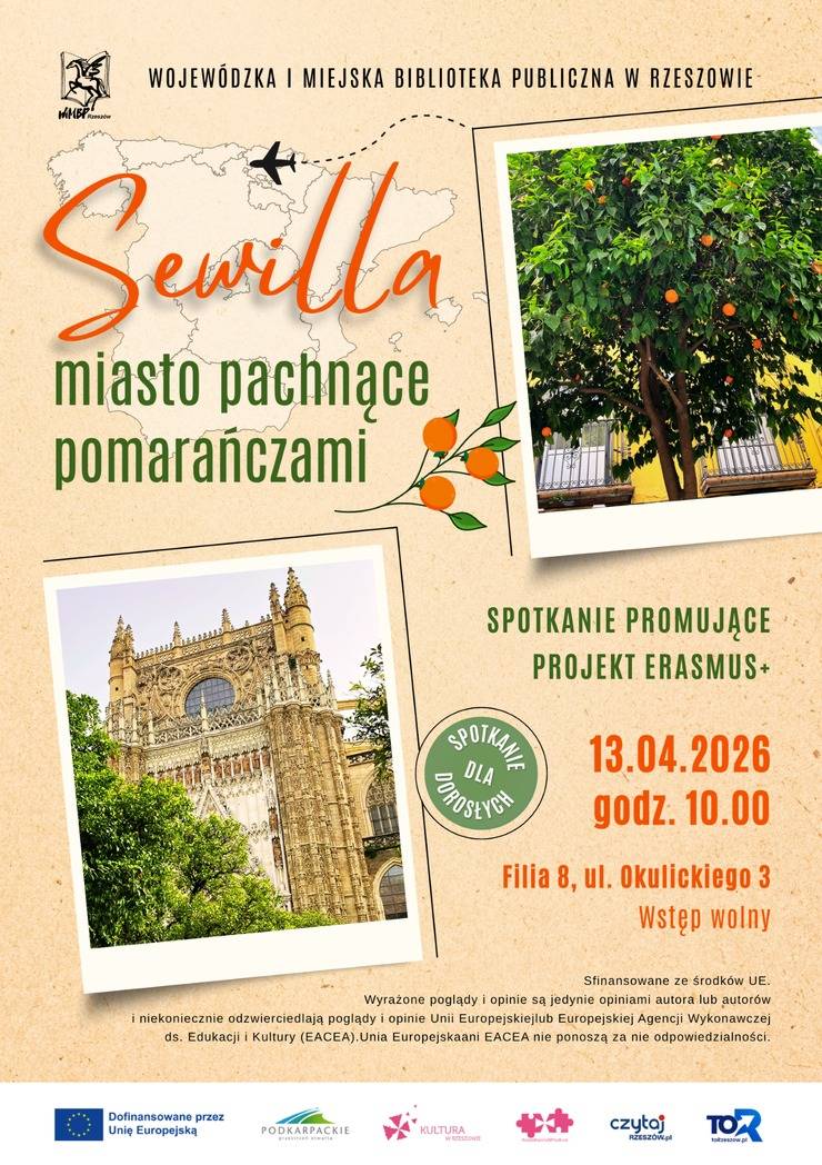 Hiszpańskie przysłowie mówi, że kto nie widział Sewilli, nie widział cudu, dlatego już w poniedziałek 13 kwietnia, podczas spotkania z uczestniczką programu Erasmus+, przeniesiemy się wspólnie do stolicy Andaluzji, by poczuć jej wyjątkowy klimat. Podążymy śladami Kolumba, Carmen, Don Juana, odkryjemy zachwycające zabytki, wąskie uliczki pachnące pomarańczami, barwne tradycje, które nadają temu miastu niezwykły charakter. Odkryjemy sekrety flamenco, tańca przepełnionego emocjami.